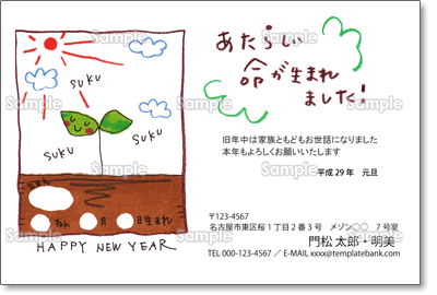 赤ちゃんが生まれたというハッピーな報告を植物の新芽で表しています。赤ちゃんが生まれた報告はしたいけれど、写真はあまり入れたくない…という方にぴったり。